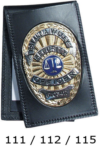 Dress leather book style double ID case with non-recessed badge flip-out mount