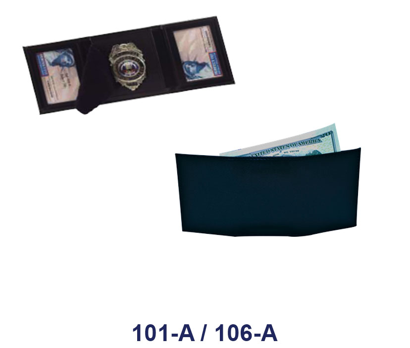 $71.50 106-A - Tri-fold Double ID Badge Wallet Tri-fold wallet with double ID window ID Size - 3” x 4 1/4” Badge Width - 3”