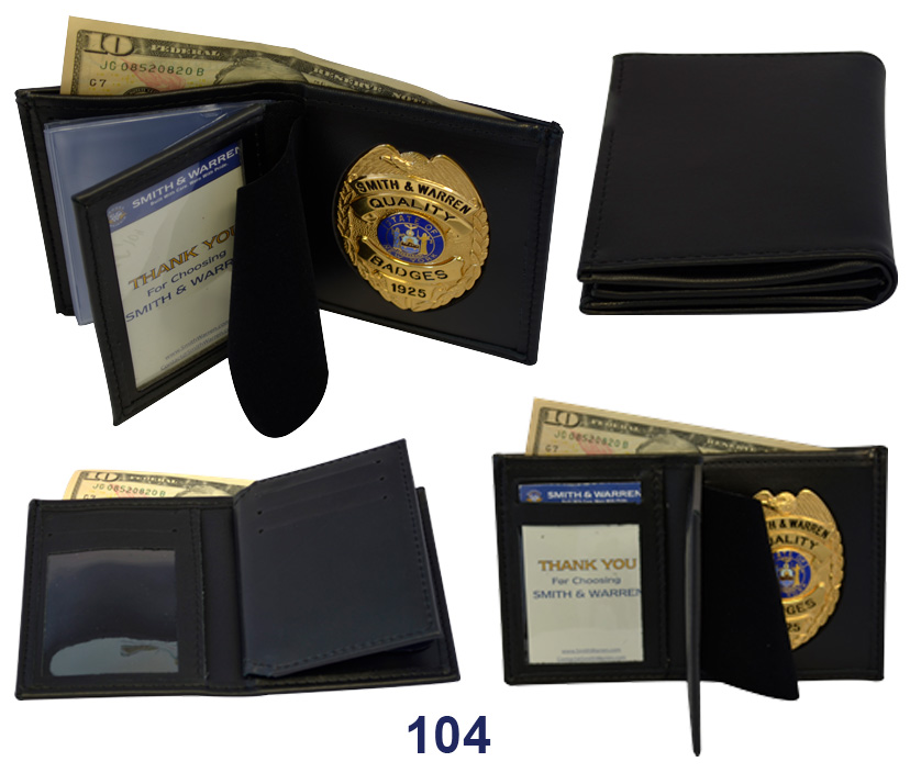 $72.50 104 - Hidden Badge Wallet Hidden badge wallet with money pocket, 5 cc slots & flipping ID window ID Size - 2 3/8” x 3 3/4” Badge Width - 2 5/8"