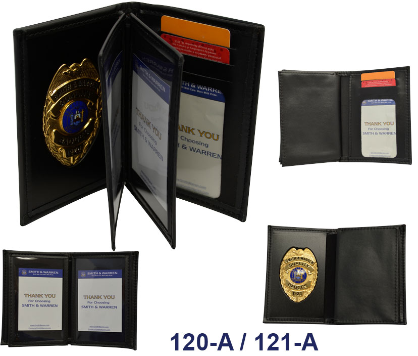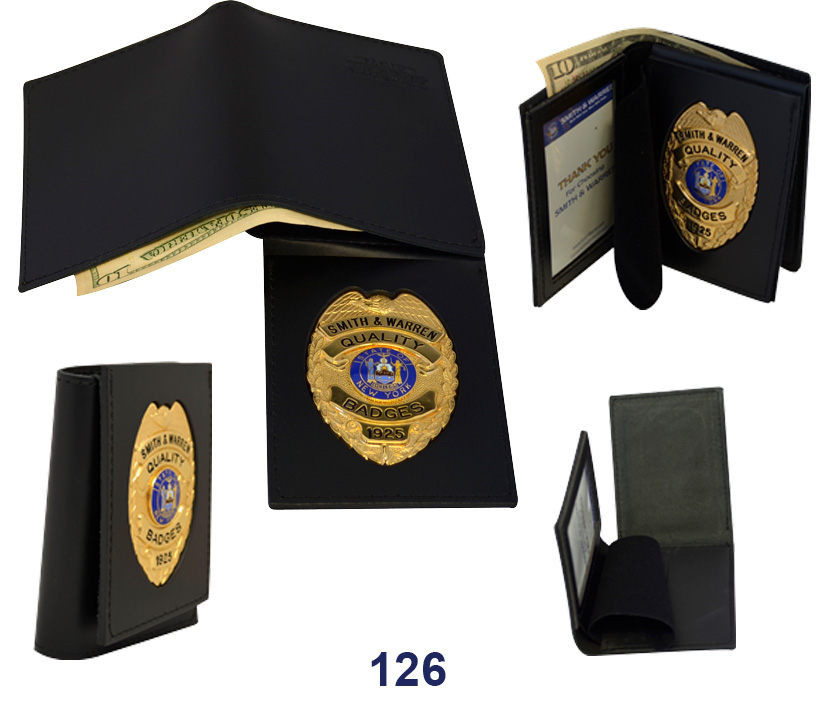 $77.50 118-A - Badge & Double ID Wallet Badge & double ID wallet with money pocket, 3 credit card slots & money pocket ID Size - 2 1/2” x 3 3/4” Badge Width - 2 7/8”